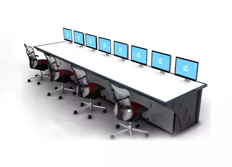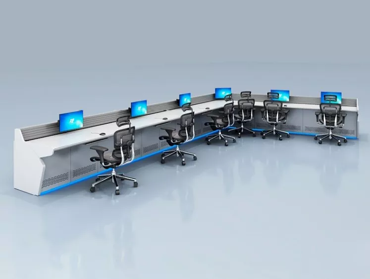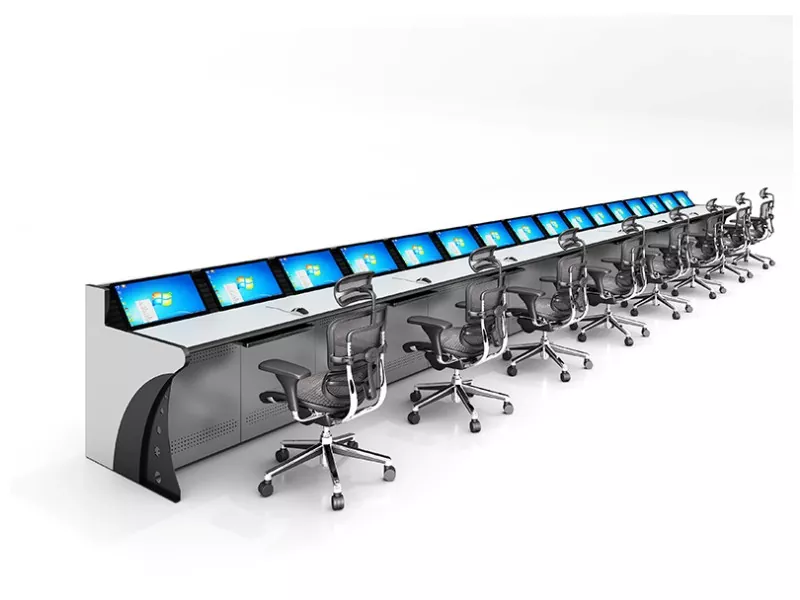 La console di monitoraggio modulare integra passerelle portacavi nascoste e canali di cablaggio organizzati per ridurre l'ingombro e semplificare la manutenzione. L'altezza di lavoro regolabile e le superfici del desktop resistenti all'usura migliorano il comfort dell'operatore durante i lunghi turni.